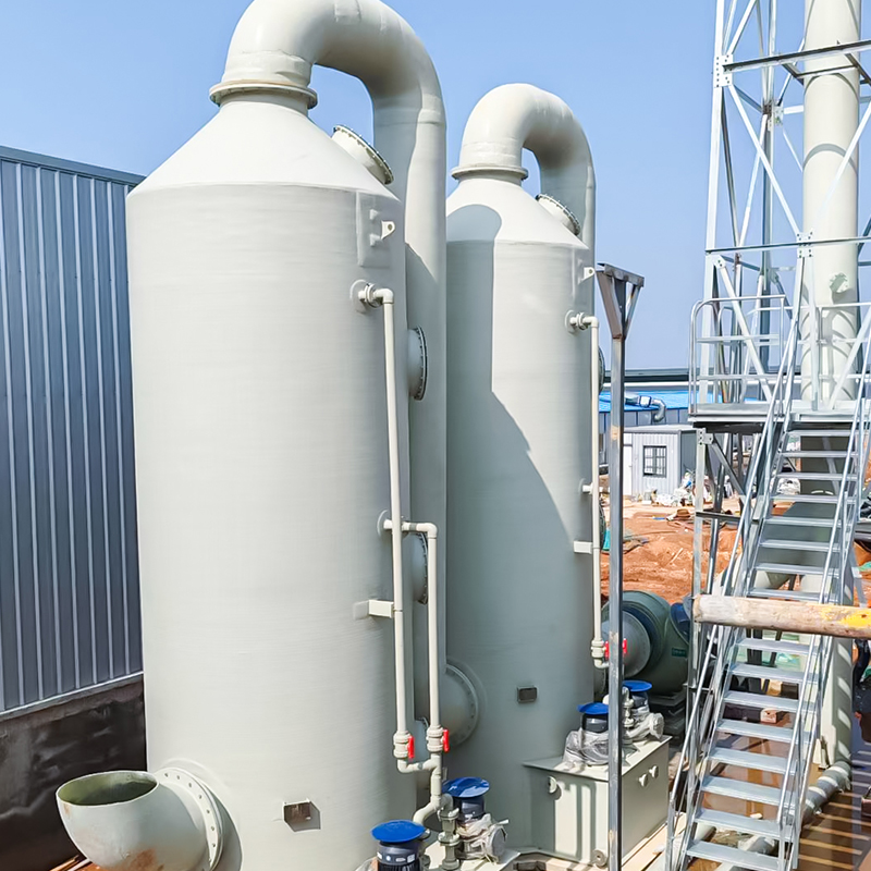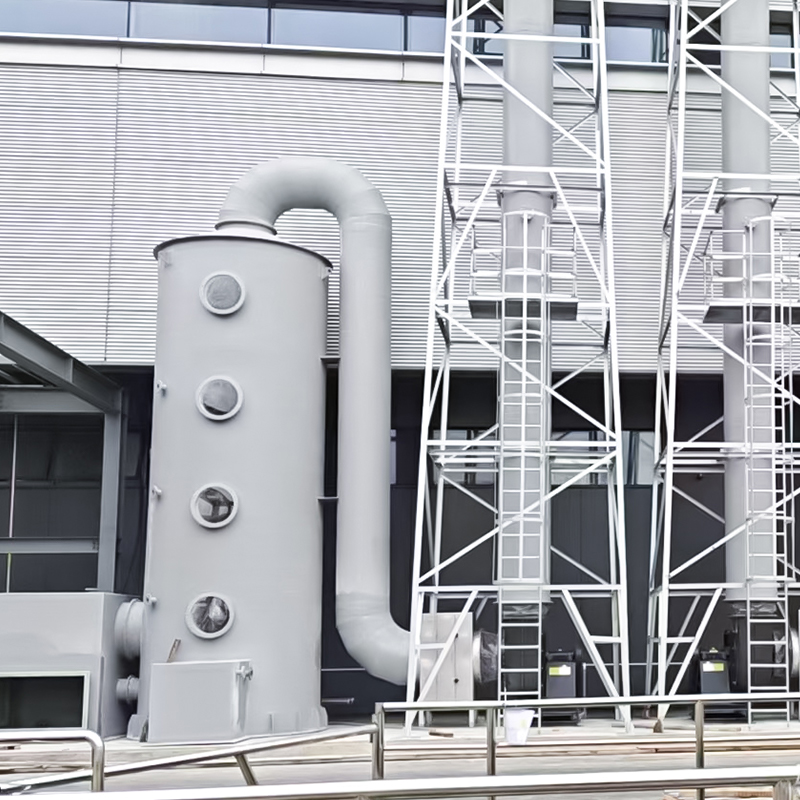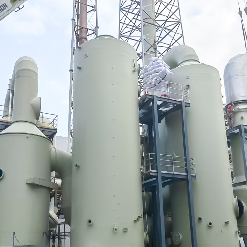 - Vízabszorpciós torony (hidrogén-klorid kezelése): A HCl vízben könnyen oldódik, és vízpermet abszorpcióval közvetlenül eltávolítható. Ez alkalmas nagy koncentrációjú HCl hulladékgázra (pl. kémiai szintézis, fém pácolás). Felszívódás után a keletkező híg sósav újrahasznosítható.